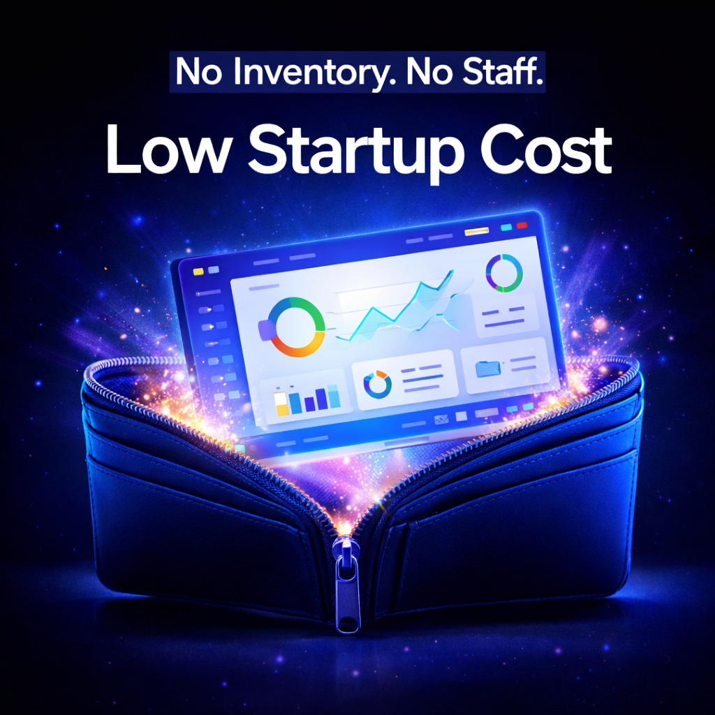 Begin with minimal investment since no inventory, warehouse, or employees are required to create and sell digital products.