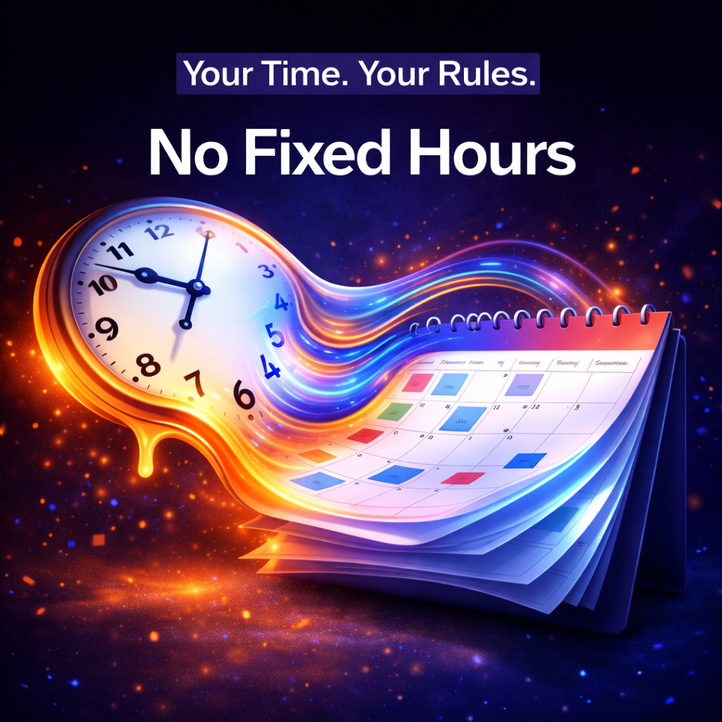 Work on your own schedule, choose your hours freely, and avoid rigid nine-to-five routines completely.