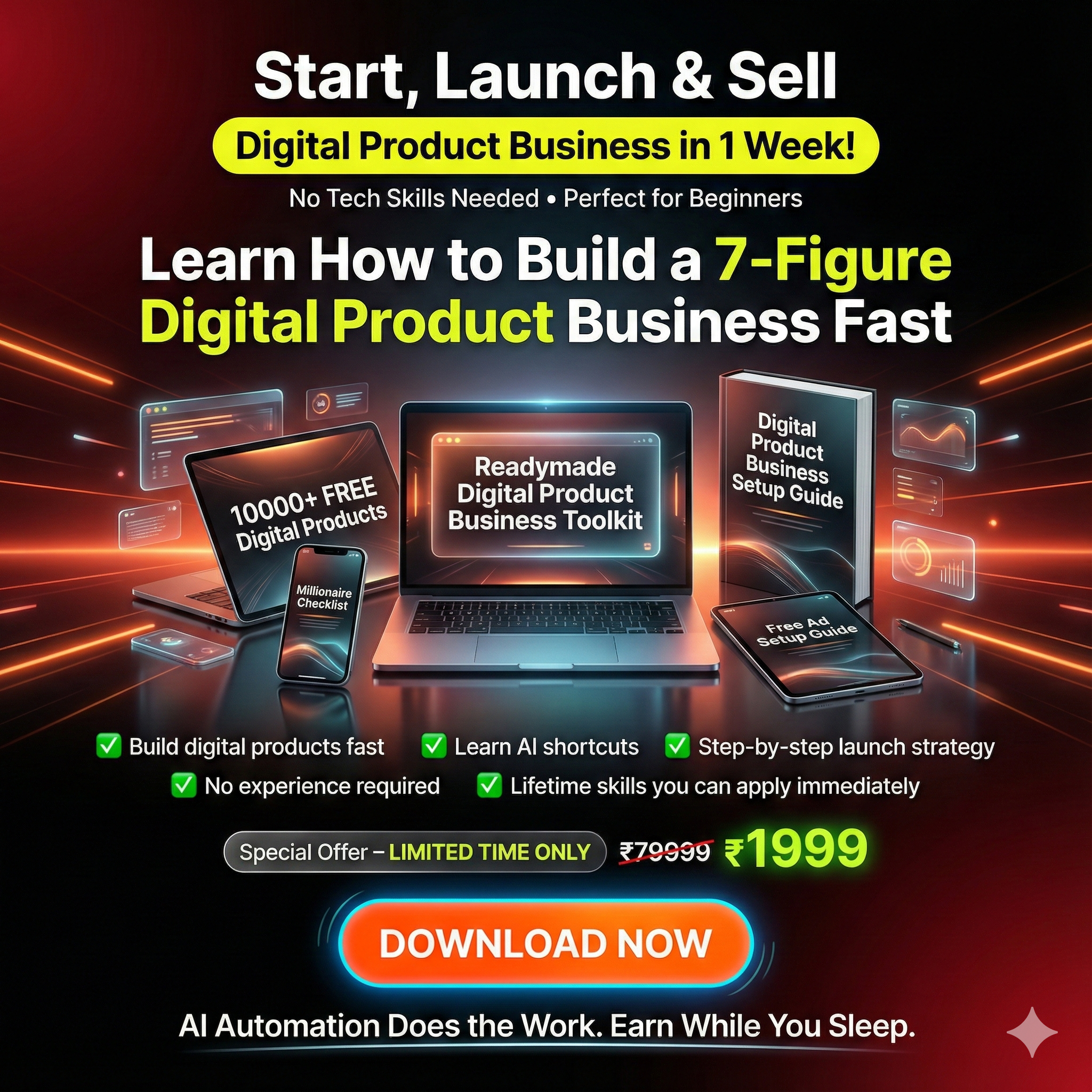 To help create 1 million Business Startups and create Financial Independence and launch a Digital Product Business in simple & affordable manner and make possible for anyone – without coding or Technical Skills & without needing to create from scratch.