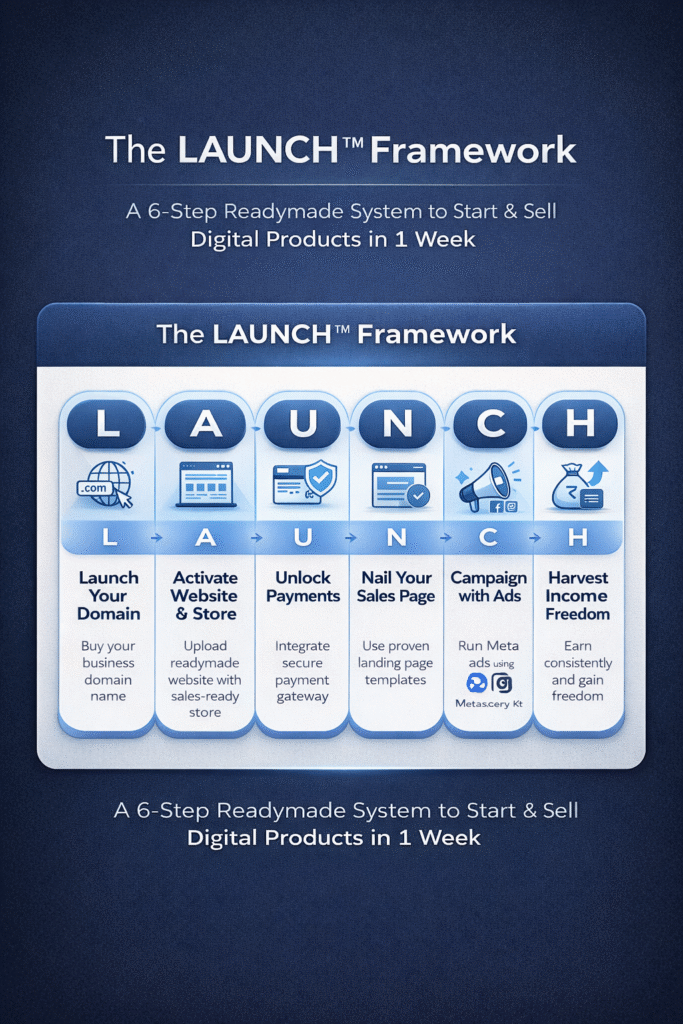 A 6-Step Readymade System to Start & Sell Digital Products in 1 Week.